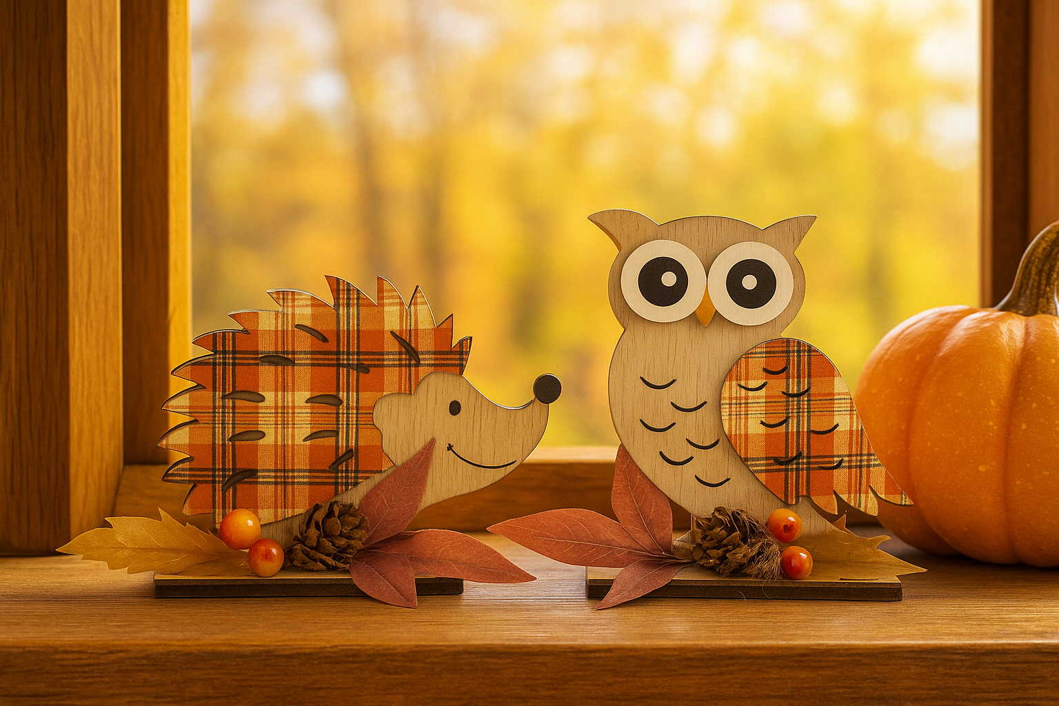 Handgefertigte Herbstdeko – Jede Figur ist sorgfältig aus Holz gefertigt